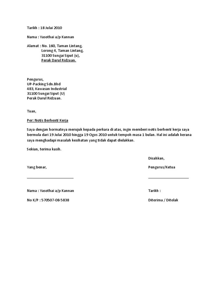 Contoh Surat Notis Berhenti Kerja 24 Jam / Contoh Surat Resign Portal Malaysia. 4 contoh surat berhenti kerja ikut situasi, notis 24 jam, 2 minggu, sebulan & versi bm. Pastikan anda mempunyai salinan surat perjanjian surat tawaran yang anda tandatangani dengan hr.